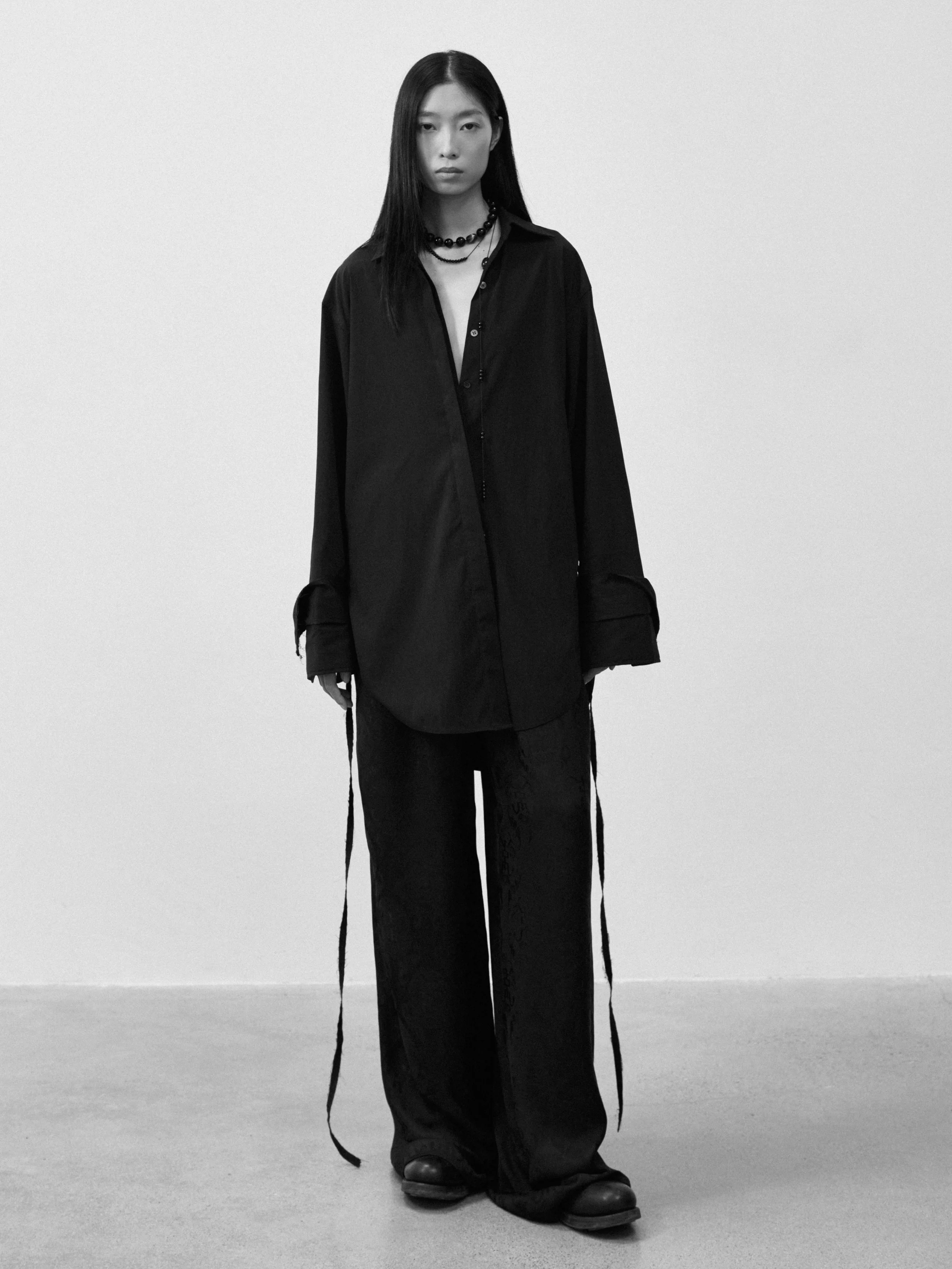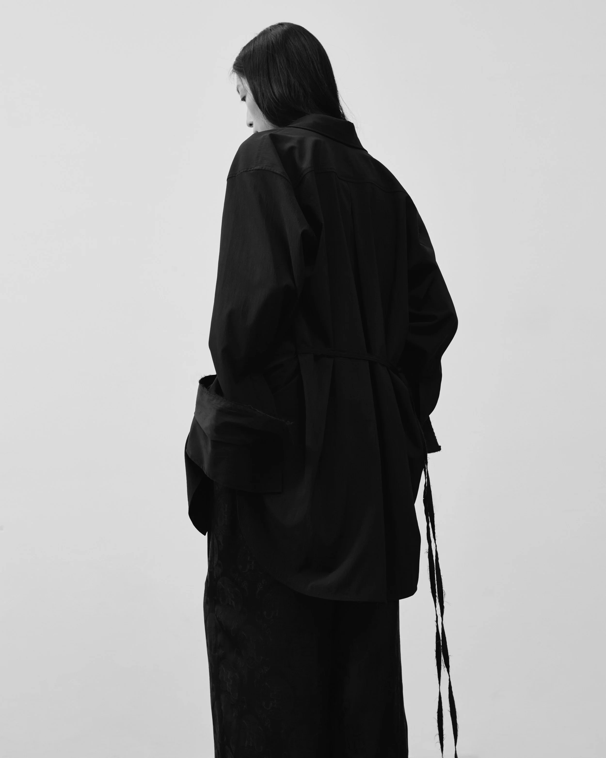Oversized shirt with double layer handcuffs and detachable string for multiple styling purpose
